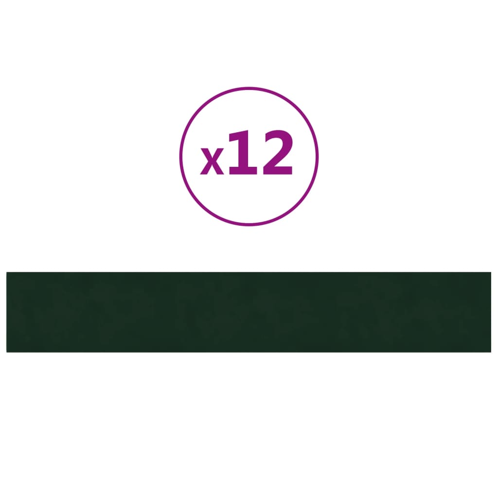 vidaXL Πάνελ Τοίχου 12 τεμ. Σκούρο πράσινο 90x15 εκ. 1,62 μ² Βελούδινα