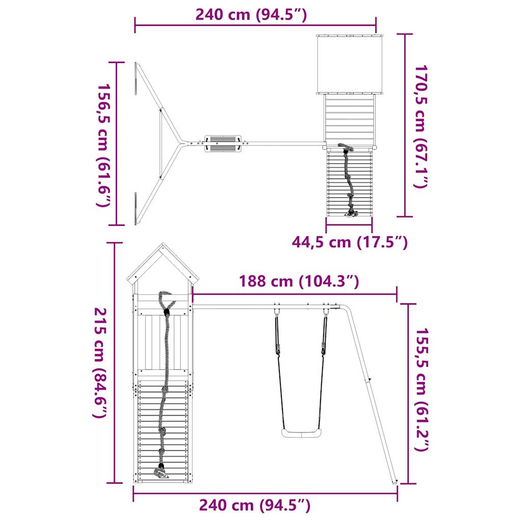 vidaXL Παιδική Χαρά Εξωτερικού Χώρου από Μασίφ Ξύλο Ψευδοτσούγκας