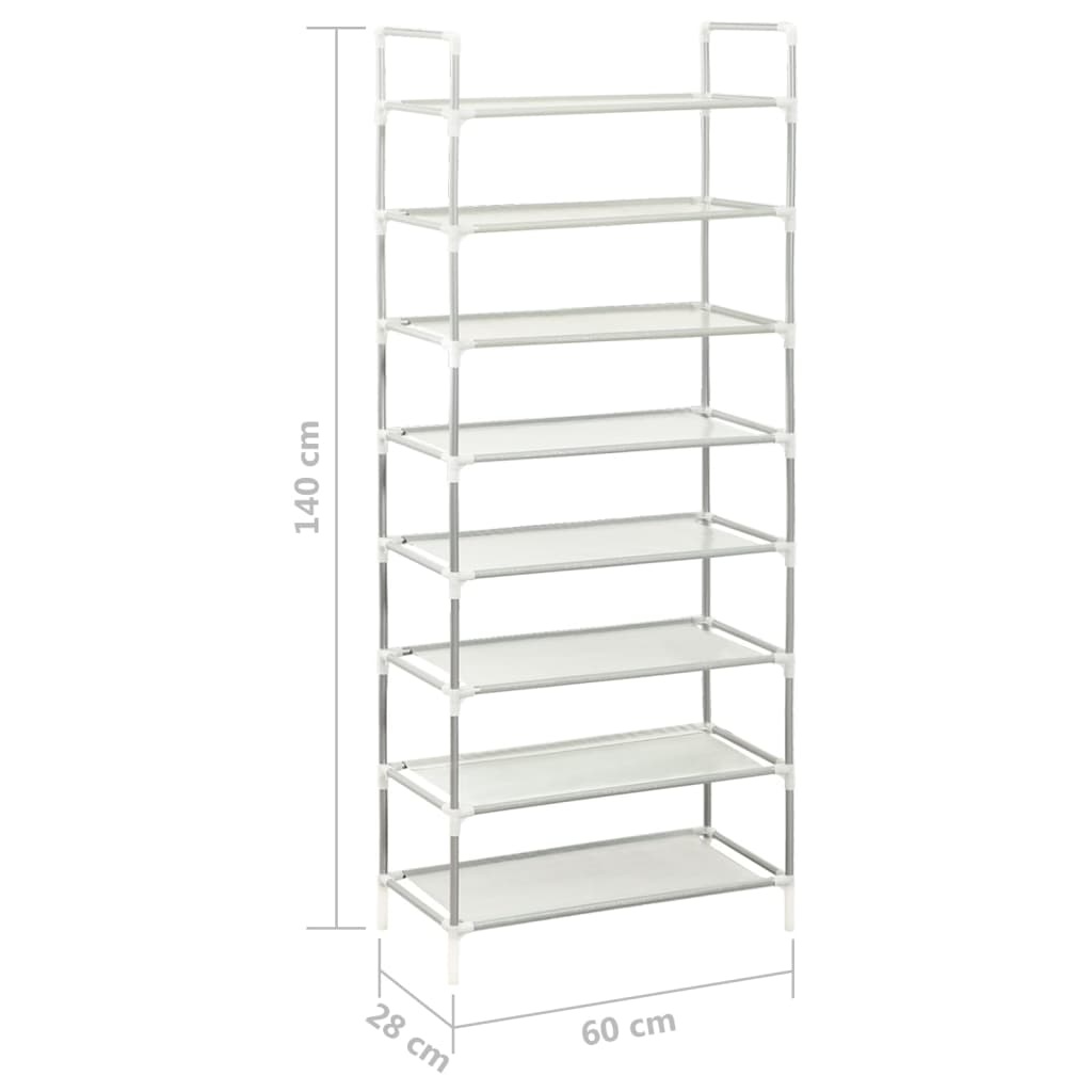 vidaXL Παπουτσοθήκη με 8 Ράφια Ασημί από Μέταλλο και Ύφασμα Non Woven