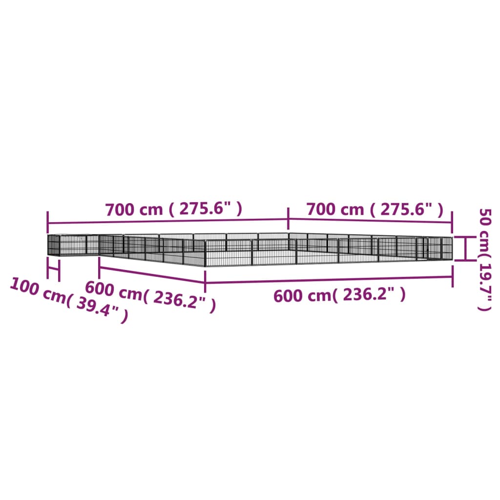 vidaXL Παρκοκρέβατο Σκύλου 28 Πάνελ Μαύρο 100x50εκ Ατσάλι Βαφή Πούδρας