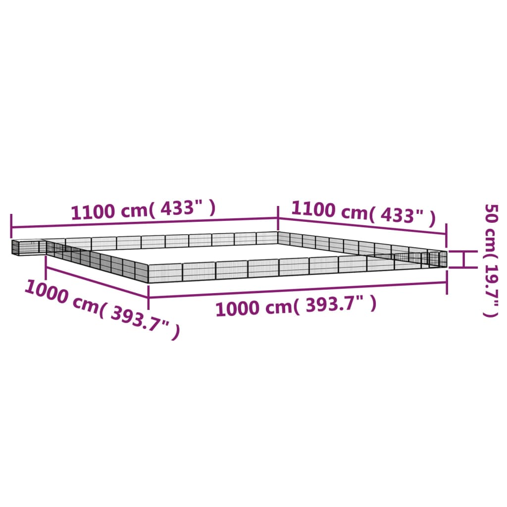 vidaXL Παρκοκρέβατο Σκύλου 44 Πάνελ Μαύρο 100x50εκ Ατσάλι Βαφή Πούδρας