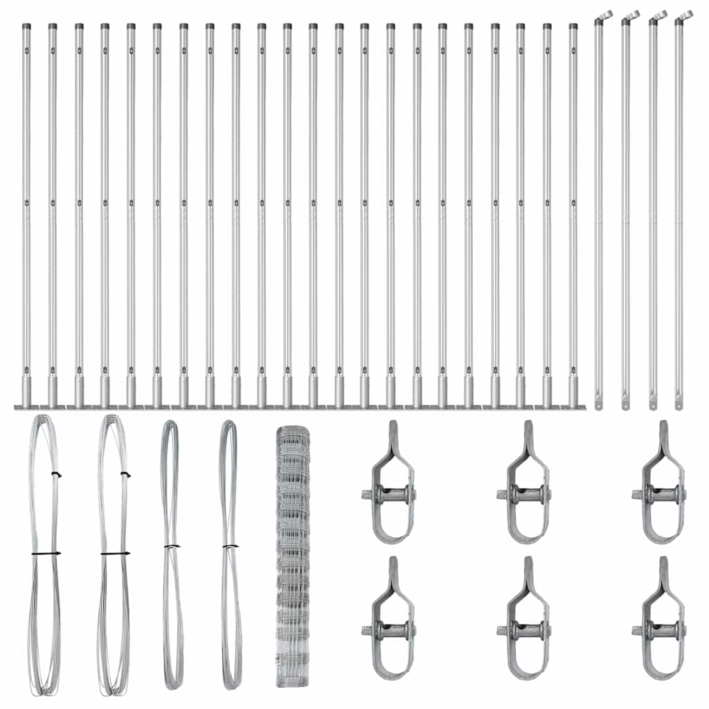 Αυτή η περίφραξη αγρού vidaXL συνδυάζει σκληρή γαλβανισμένη κατασκευή με ευχέρεια, κάνοντάς την τέλεια για τα έξω. Το κομψό ασημένιο φινίρισμα και η σταθερή κατασκευή ασφαλίζουν τον χώρο σας και κάνουν και πιο ωραία την περιοχή σας, ό,τι κι αν έχετε—κάσες, κήποι ή φάρμες.