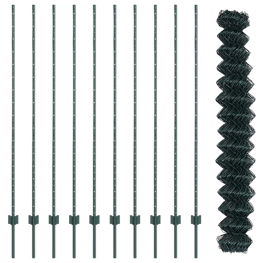 vidaXL Περίφραξη Αλυσίδας με 10 U Πόρους Πράσινη 1.6x10 μ Ατσάλι