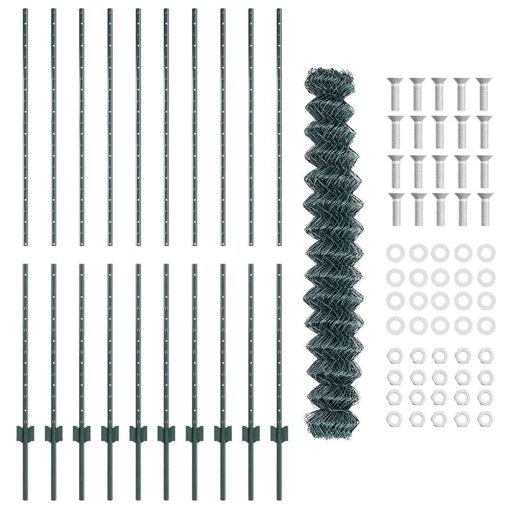 vidaXL Περίφραξη τύπου αλυσίδας με 10 U Posts Πράσινη 1.5x10 μ Χάλυβας