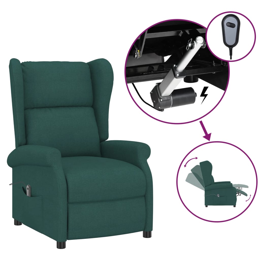 vidaXL Πολυθρόνα Ανακλινόμενη Ηλεκτρική Ανάκλιση Σκ.Πράσινο Υφασμάτινη