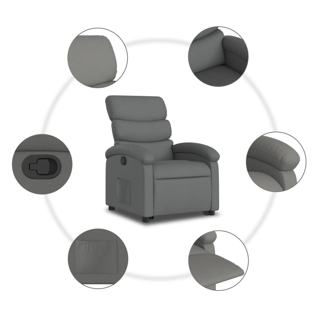 vidaXL Πολυθρόνα Ανακλινόμενη με Ανύψωση Σκούρο Γκρι Υφασμάτινη