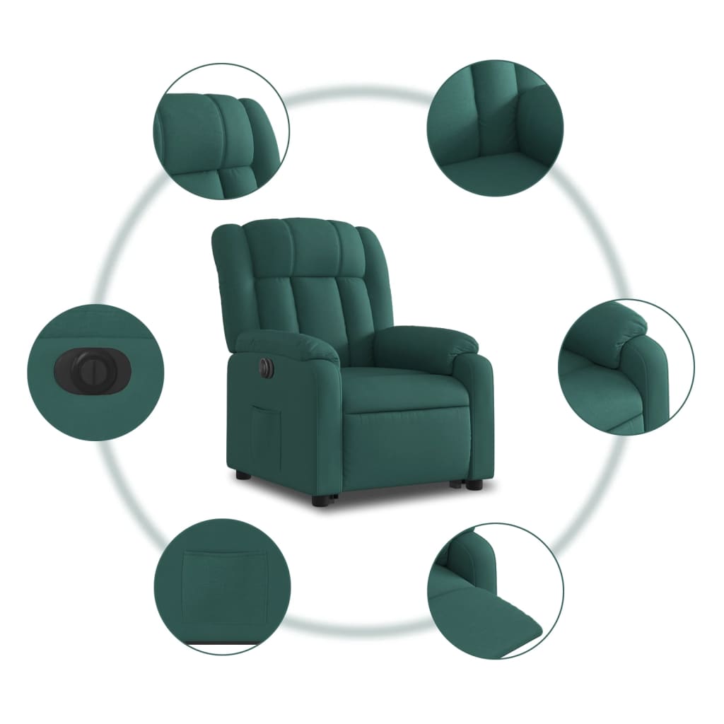 vidaXL Πολυθρόνα Ηλεκ. Ανακλ. Ανύψωση Σκ. Πράσινο Υφασμάτινη