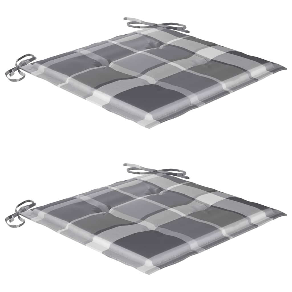 vidaXL Πολυθρόνα Κουνιστή από Μασίφ Ξύλο Teak με Γκρι Καρό Μαξιλάρι