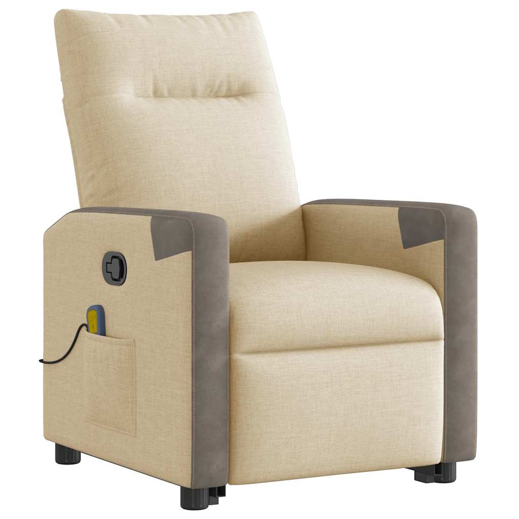 vidaXL Πολυθρόνα Μασάζ Ανακλινόμενη με Ανύψωση Κρεμ Υφασμάτινη
