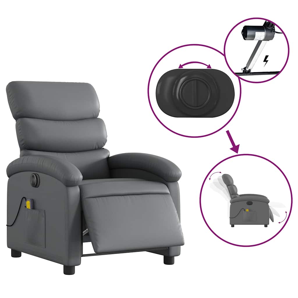 vidaXL Πολυθρόνα Μασάζ Ηλεκτρική Ανακλ. Γκρι από Συνθετικό Δέρμα