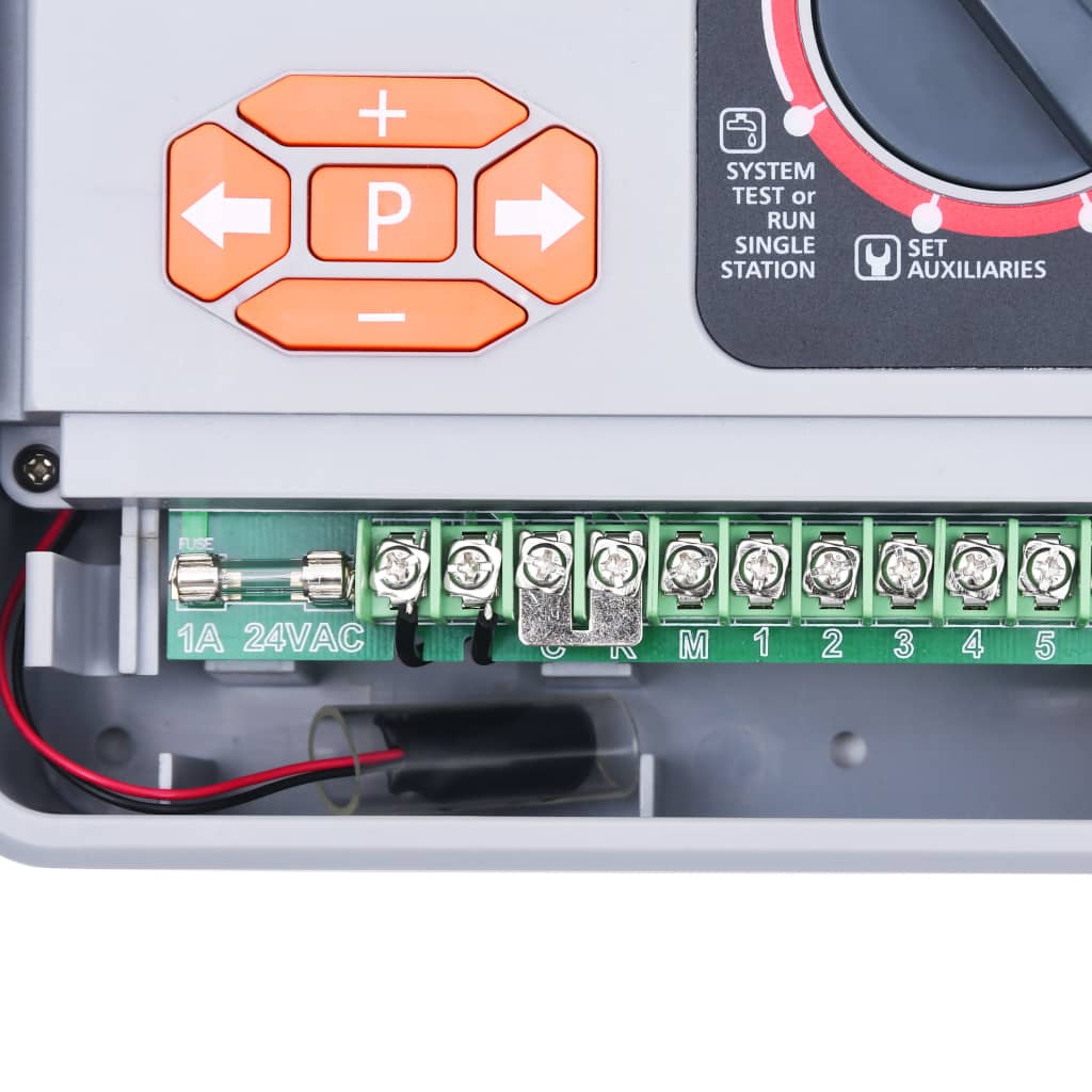 Ο χρονοδιακόπτης ποτίσματος μπορεί να ελέγξει 4, 6, 9 ή 11 βαλβίδες. Ο προγραμματιστής ποτίσματος διαθέτει 6 προγράμματα ποτίσματος. Κάθε πρόγραμμα διαθέτει χρόνο εκκίνησης, χρόνο λήξης και τον χρόνο λειτουργίας. Μπορείτε να ορίσετε το πρόγραμμα ποτίσματος για κάθε ημέρα της εβδομάδας, με συγκεκριμένη ώρα εκκίνησης και λήξης. Μπορείτε να ορίσετε την διάρκεια από 1 λεπτό έως και 12 ώρες και 59 λεπτά. Αυτός ο υπολογιστής ποτίσματος λειτουργεί μέσω μετασχηματιστή AC. Ο χειρισμός του είναι εύκολος μέσω του περιστρεφόμενου διακόπτη και το πιεζόμενο κουμπί για την επιλογή δεδομένων και την επιβεβαίωση. Υπάρχει δυνατότητα σύνδεσης με αισθητήρα βροχής ή αισθητήρα υγρασίας (δεν περιλαμβάνονται στην παράδοση) για να παραλείπετε το πότισμα και να να μεγιστοποιείτε την εξοικονόμηση νερού τις ημέρες που βρέχει ή που το έδαφος είναι πολύ υγρό. Είναι απαραίτητη και μία αλκαλική μπαταρία 9 V (δεν περιλαμβάνεται στην παράδοση) για την εμφάνιση του ψηφιακού ρολογιού στην οθόνη καθώς και για την αποθήκευση των προηγούμενων παραμέτρων.