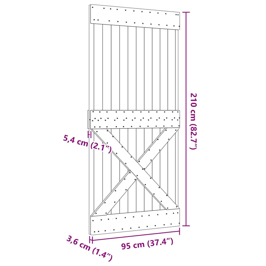 vidaXL Πόρτα NARVIK 95 x 210 εκ. από Μασίφ Ξύλο Πεύκου