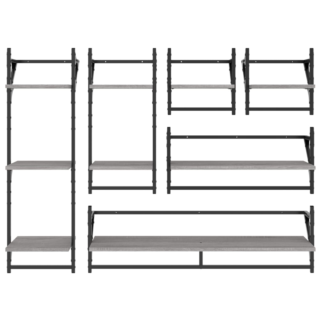 vidaXL Ράφια Τοίχου Σετ 6 τεμ. με Μπάρες Γκρι Sonoma Επεξ. ξύλο