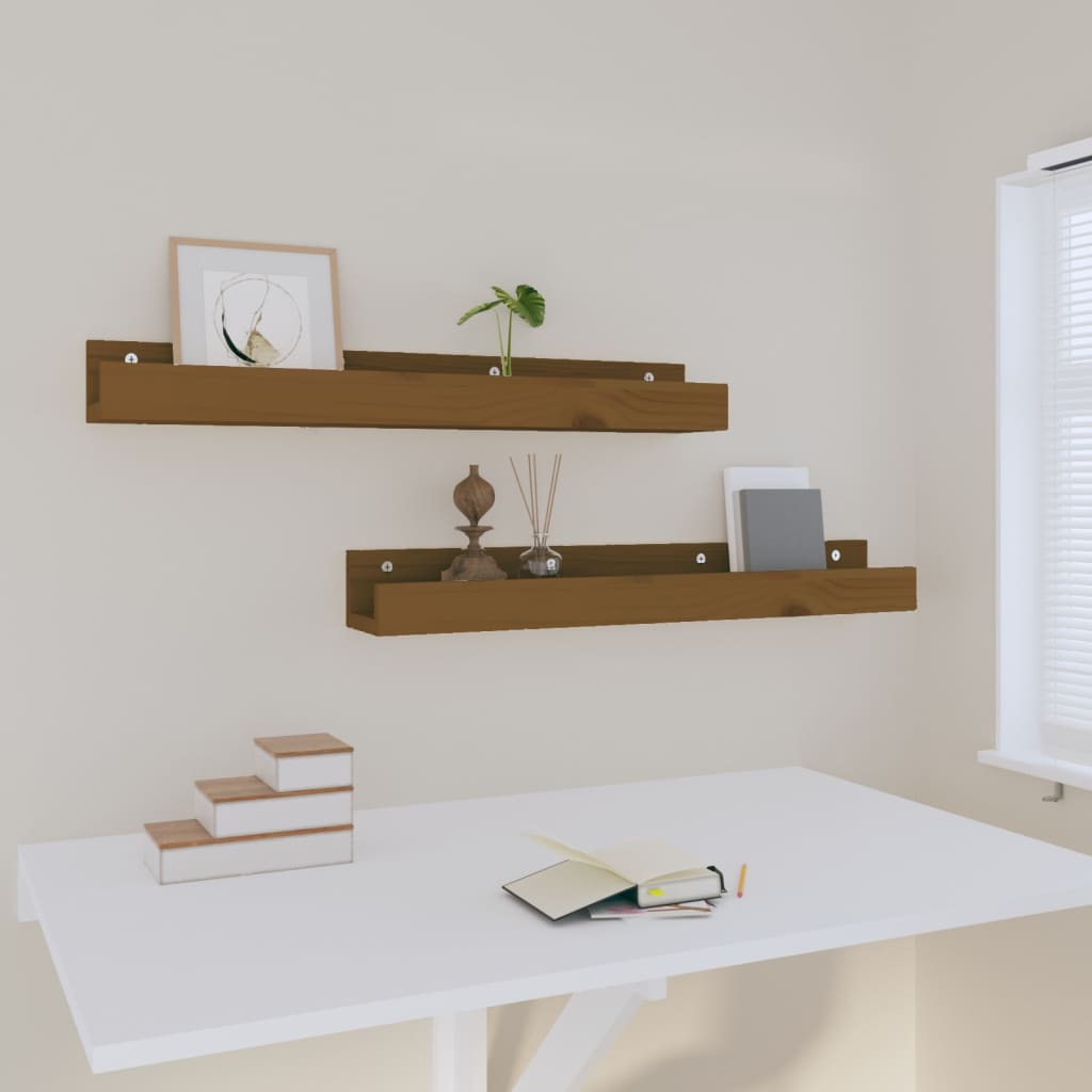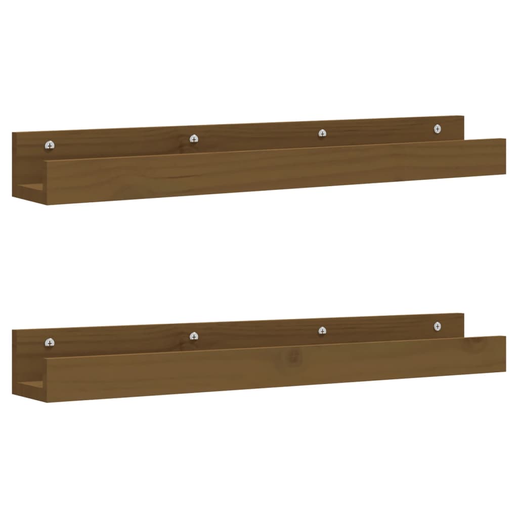 vidaXL Ράφια Τοίχου 2 τεμ. Καφέ Μελί 80x12x9 εκ Μασίφ Ξύλο Πεύκου