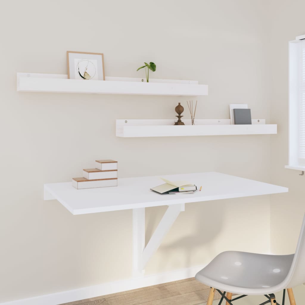 vidaXL Ράφια Τοίχου 2 τεμ. Λευκό 110x12x9 εκ. από Μασίφ Ξύλο Πεύκου
