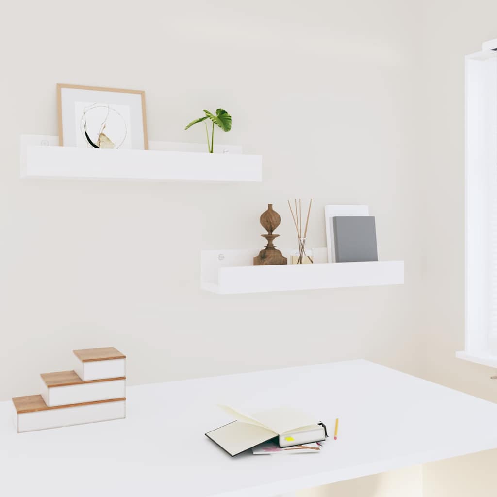 vidaXL Ράφια Τοίχου 2 τεμ. Λευκό 50x12x9 εκ. από Μασίφ Ξύλο Πεύκου