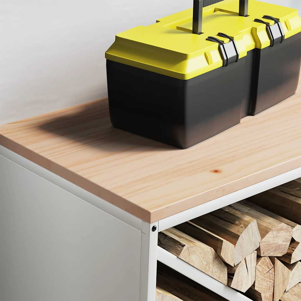 vidaXL Ράφι για καυσόξυλα με ξύλινη κορυφή Λευκό 100,5x35,5x40 εκ.
