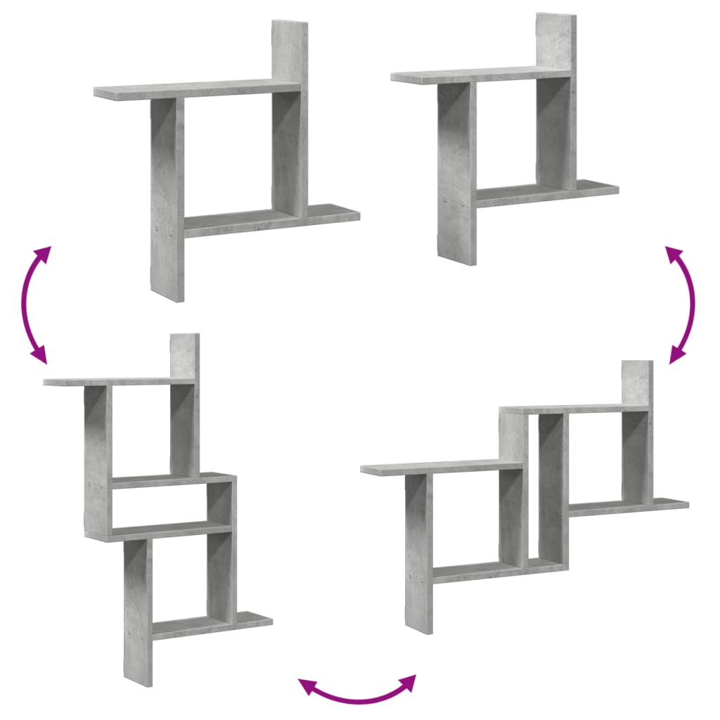 vidaXL Ραφιέρες Τοίχου 2 τεμ. Γκρι Σκυροδ. 50x12x50εκ. από Επεξ. Ξύλο