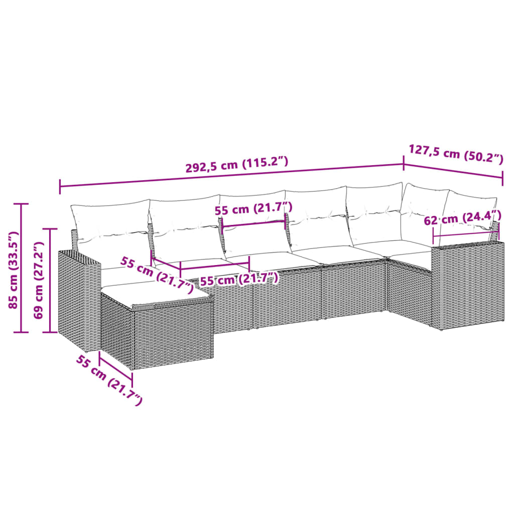 vidaXL Σαλόνι Κήπου Σετ 7 Τεμαχίων Γκρι Συνθετικό Ρατάν με Μαξιλάρια