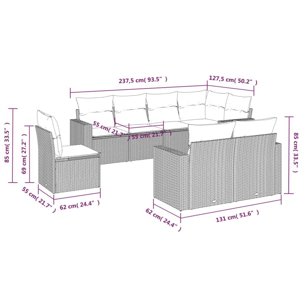 vidaXL Σαλόνι Κήπου Σετ 8 τεμ. Μπεζ Συνθετικό Ρατάν με Μαξιλάρια