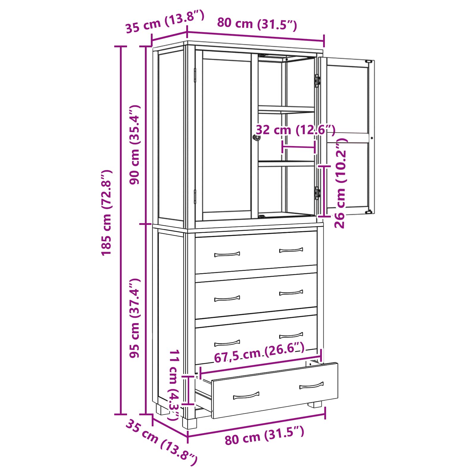 - Συνολικές διαστάσεις: 80 x 35 x 185 εκ (Μ x Π x Υ)