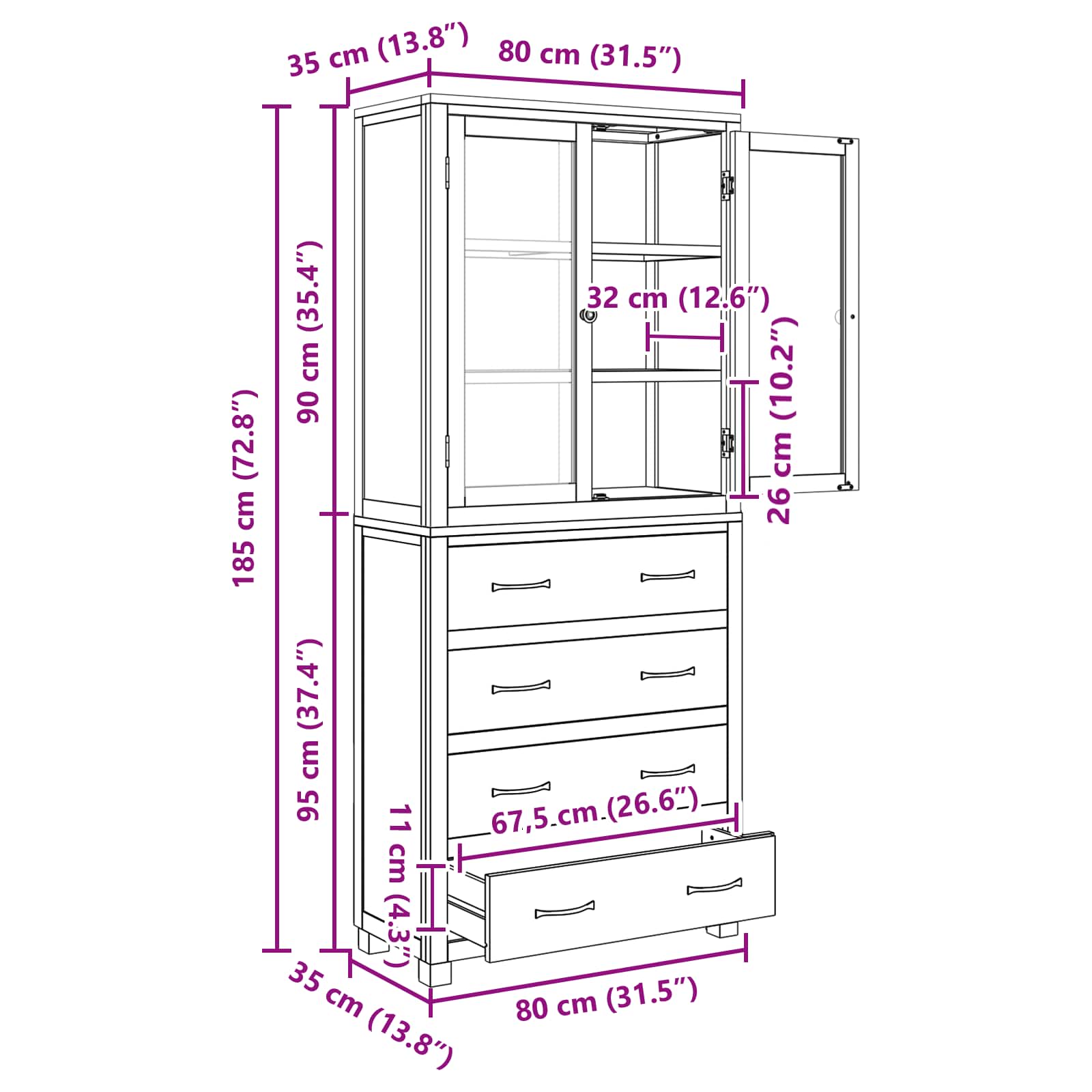 - Συνολικές διαστάσεις: 80 x 35 x 185 εκ (Μ x Π x Υ)