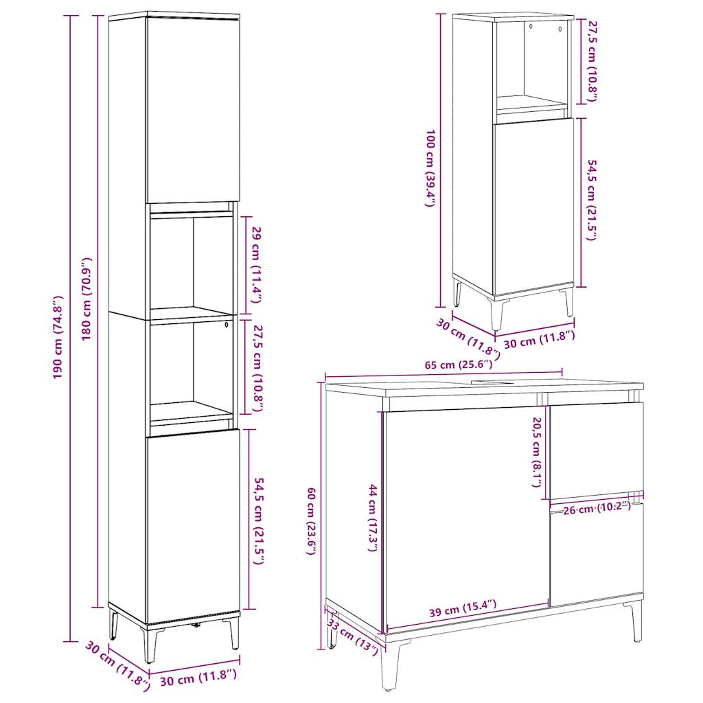 - Διαστάσεις ντουλαπιού μπάνιου (L): 30 x 30 x 190 εκ. (Π x Β x Υ)