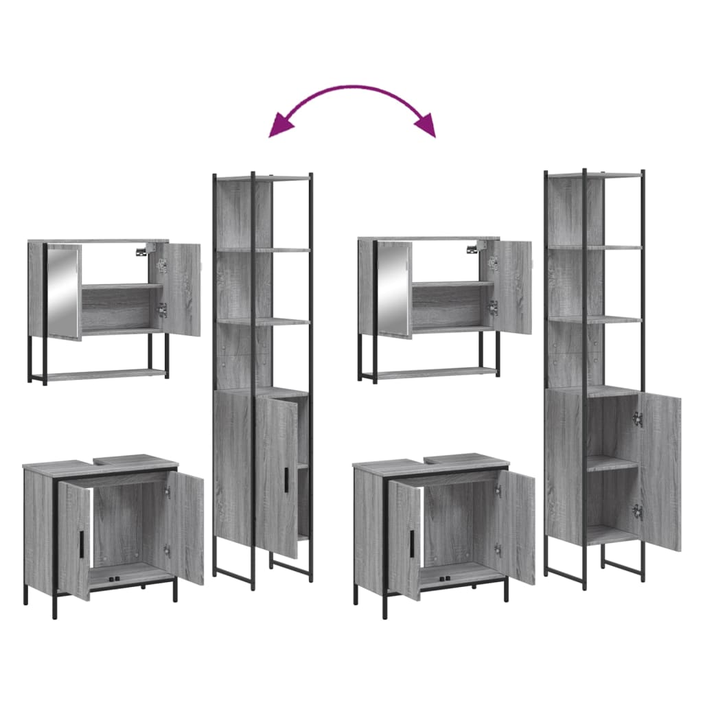 vidaXL Σετ Επίπλων Μπάνιου 3 Τεμαχίων Γκρι Sonoma Επεξεργασμένο Ξύλο