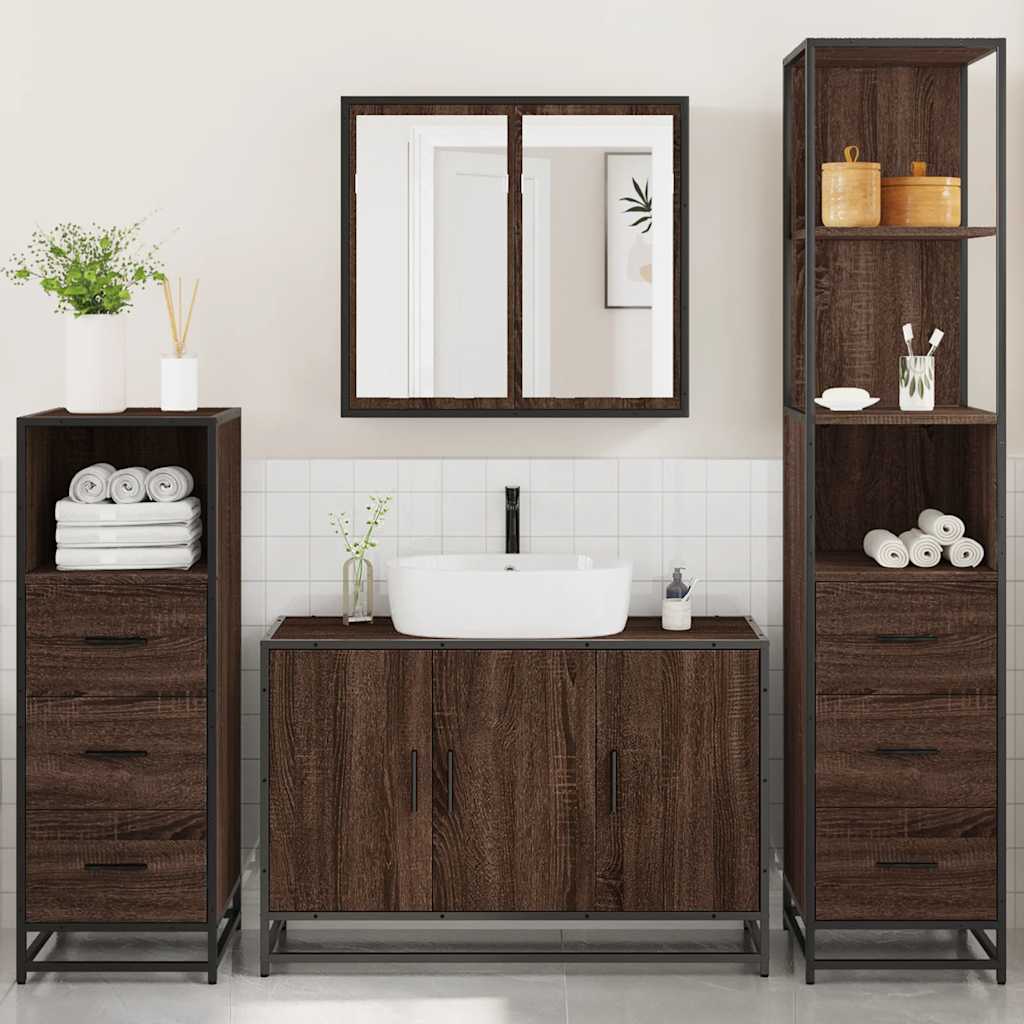 vidaXL Σετ Επίπλων Μπάνιου 4 Τεμαχίων Καφέ Δρυς από Επεξεργασμένο Ξύλο