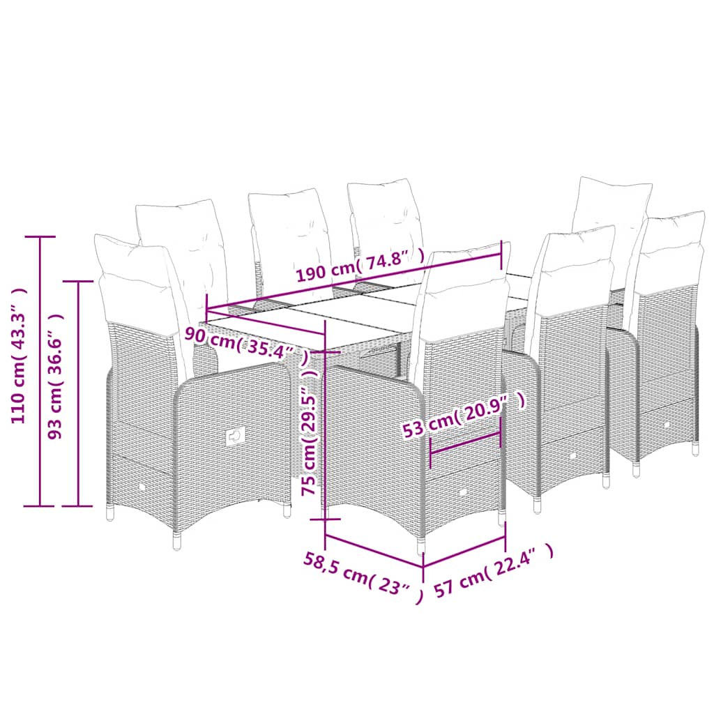 vidaXL Σετ Επίπλων Μπιστρό Κήπου 9 τεμ. Καφέ Συνθ. Ρατάν με Μαξιλάρια