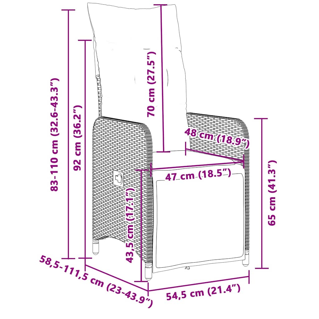 - 6 x Ανακλινόμενες καρέκλες κήπου με υποπόδιο