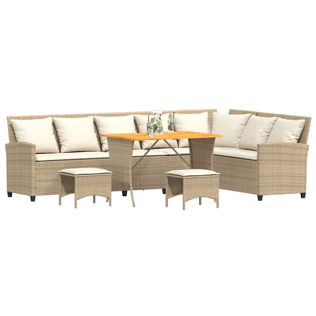 vidaXL Σετ Καναπές Κήπου 4 τεμ. Μπεζ Συνθετικό Ρατάν Μαξιλάρια σχήμα L