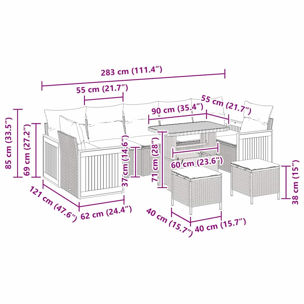 vidaXL Σετ Καναπέ Κήπου 10 Τεμαχίων με Μαξιλάρια Μαύρο Πολυ Ρατάν Ακακία