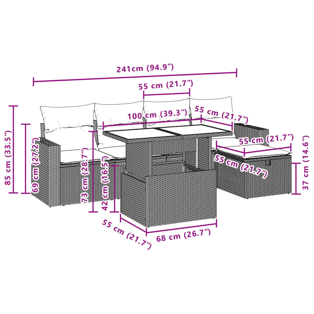 vidaXL Σετ Καναπέ Κήπου 6 τεμ. Μπεζ Συνθετικό Ρατάν με Μαξιλάρια