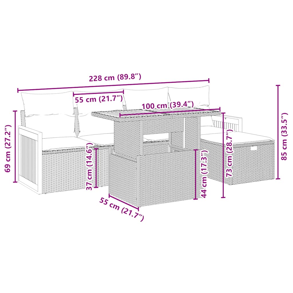 vidaXL Σετ Καναπέ Κήπου 6 τεμ. Μπεζ Συνθετικό Ρατάν με Μαξιλάρια