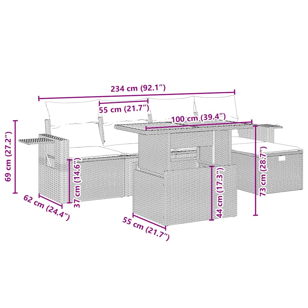 vidaXL Σετ Καναπέ Κήπου 6 τεμ. Μπεζ Συνθετικό Ρατάν με Μαξιλάρια