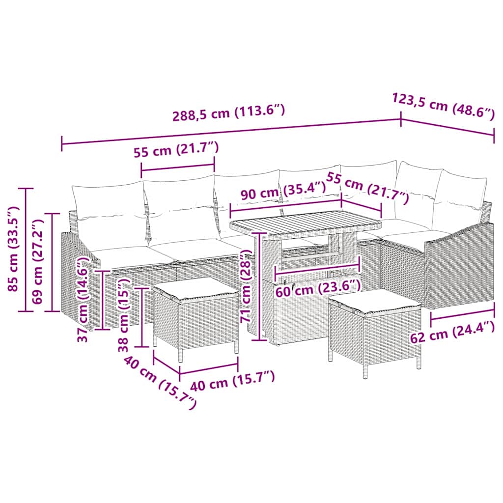vidaXL Σετ Καναπέ Κήπου 9 τεμαχίων με Μαξιλάρια Μπεζ Πολυ Ρατάν Ακακία
