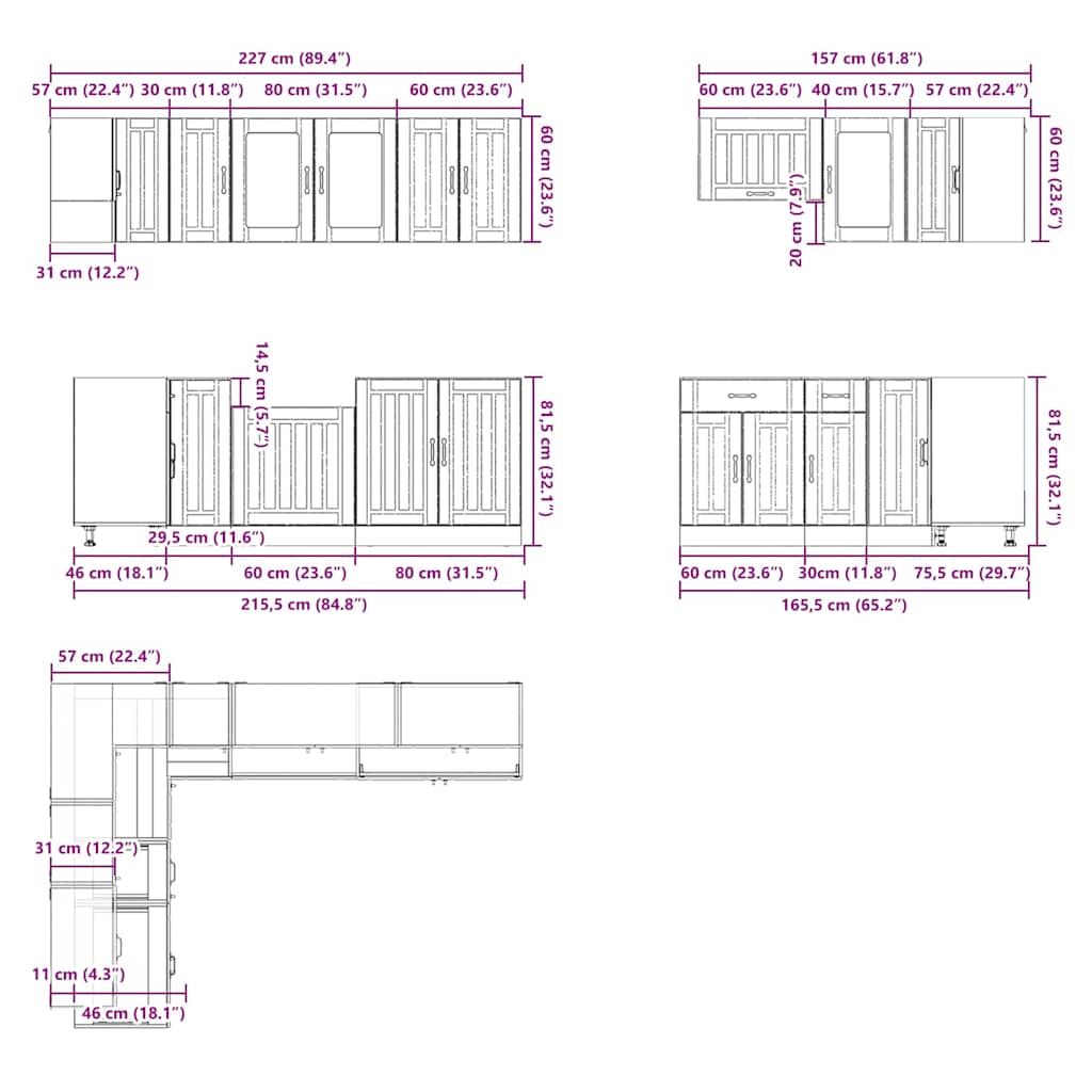 - 1 x γωνιακό ντουλάπι βάσης κουζίνας: 75,5 x 75,5 x 81,5 εκ. (Π x Β x Υ)