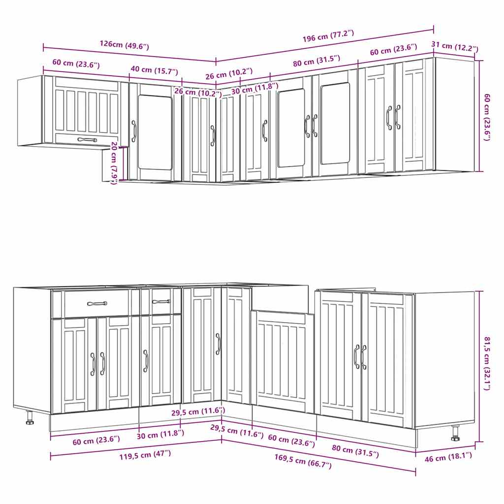 vidaXL Σετ Ντουλάπια Κουζίνας 11 τεμ. Lucca Παλαιού Ξύλου Επεξ. Ξύλο