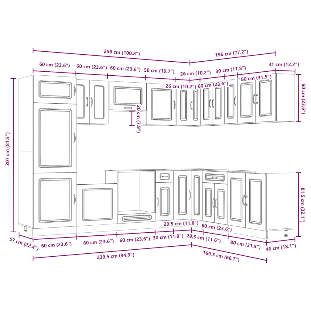 - 1 x ντουλάπι κουζίνας: 60 x 57 x 207 cm (Π x Β x Υ)