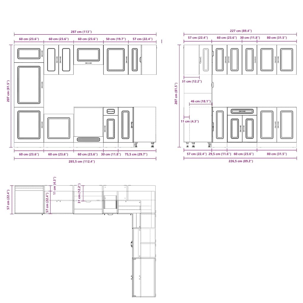 - 1 x γωνιακό ντουλάπι βάσης κουζίνας: 75,5 x 75,5 x 81,5 εκ. (Π x Β x Υ)