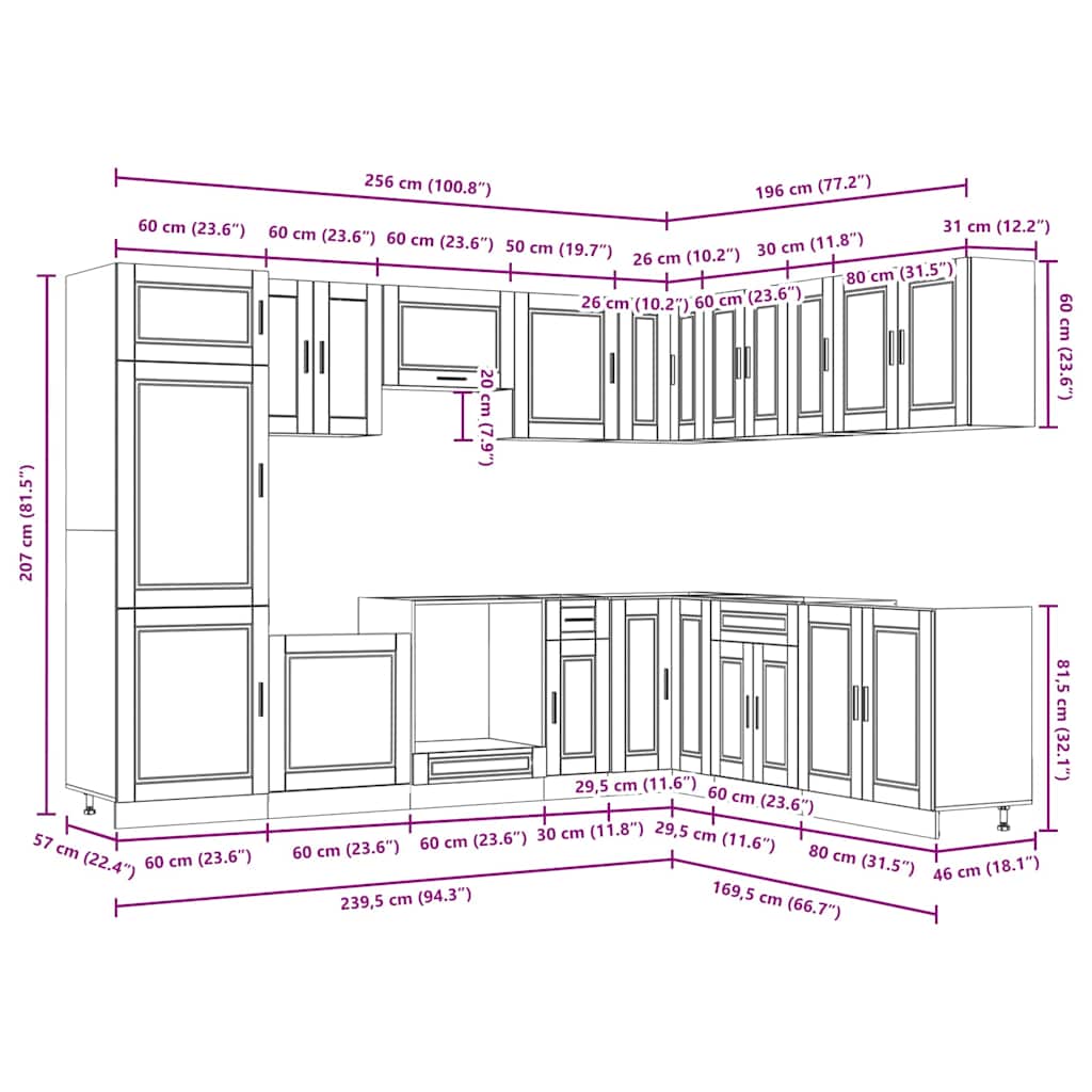 vidaXL Σετ Ντουλάπια Κουζίνας 14 Τεμαχίων Porto Επεξεργασμένο Ξύλο