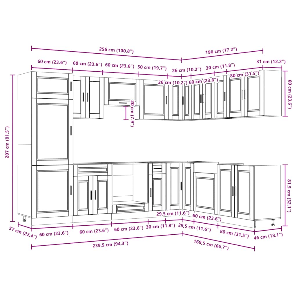 - 1 x ντουλάπι κουζίνας: 60 x 57 x 207 cm (Π x Β x Υ)