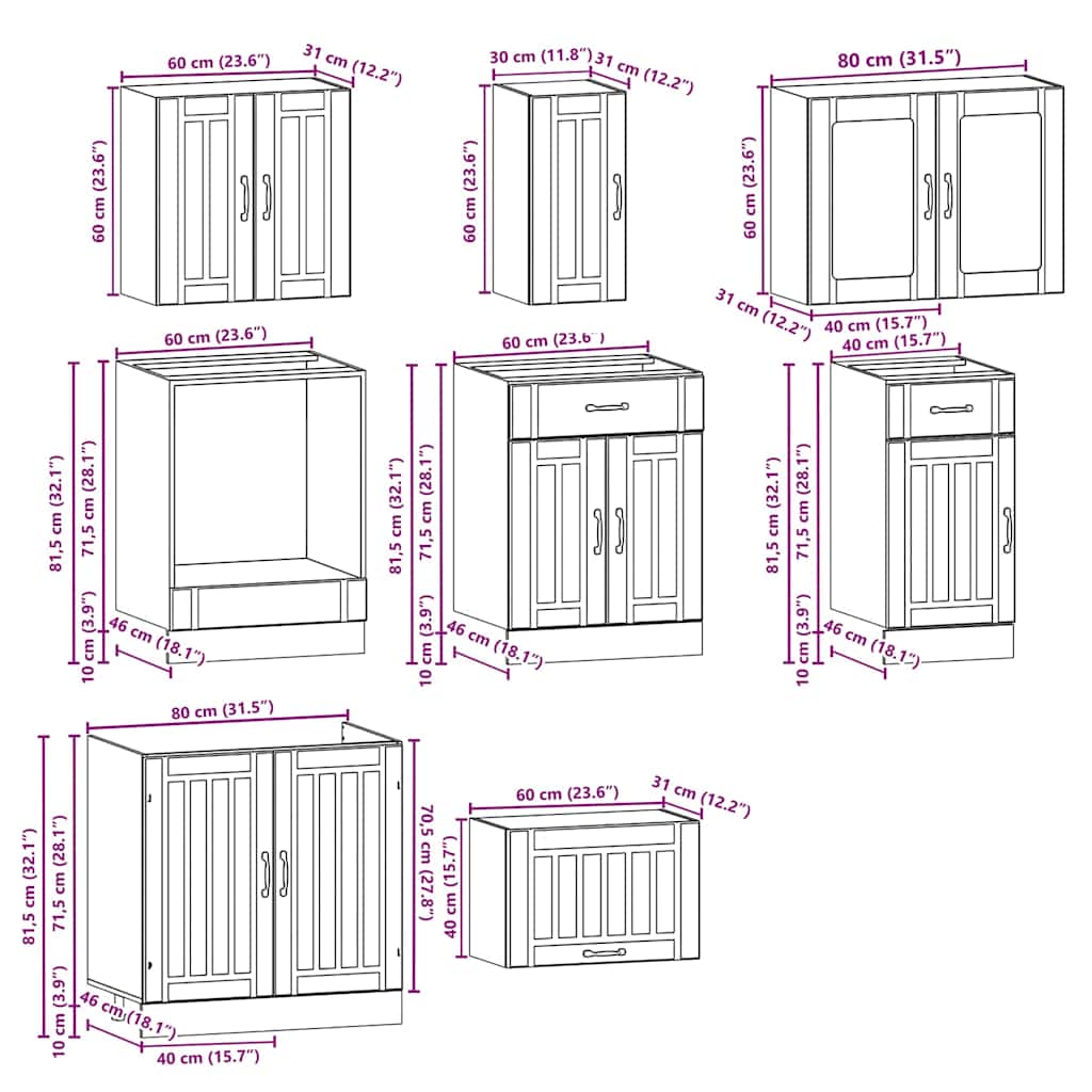 vidaXL Σετ Ντουλάπια Κουζίνας 8 Τεμαχίων Kalmar Επεξεργασμένο Ξύλο