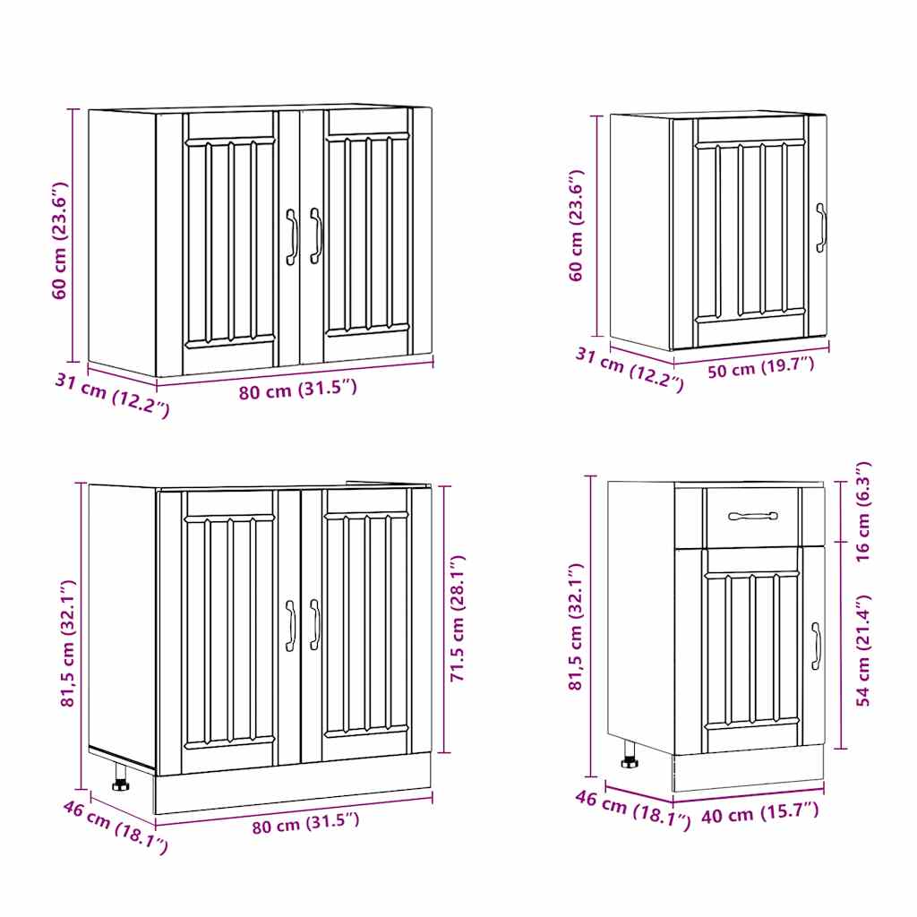 - 1 x Ντουλάπι φούρνου: 60 x 46 x 81,5 εκ. (Π x Β x Υ)
