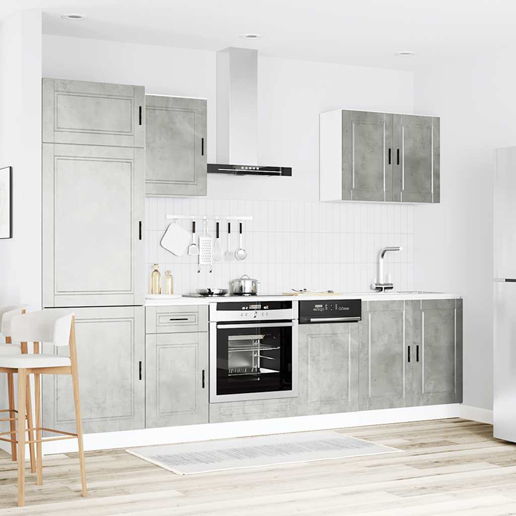 vidaXL Σετ Ντουλαπιών Κουζίνας 7 Τεμαχίων "Porto" Γκρι από Σκυρόδεμα με Μηχανική Επένδυση Ξύλου