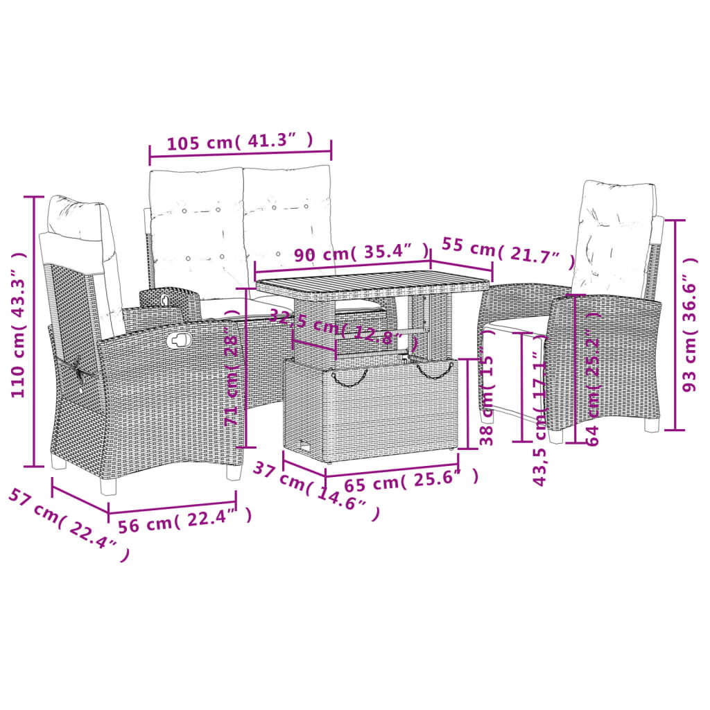 - Διαστάσεις σε ύπτια θέση: 57 x 117 x 83 εκ. (Π x B x Y)