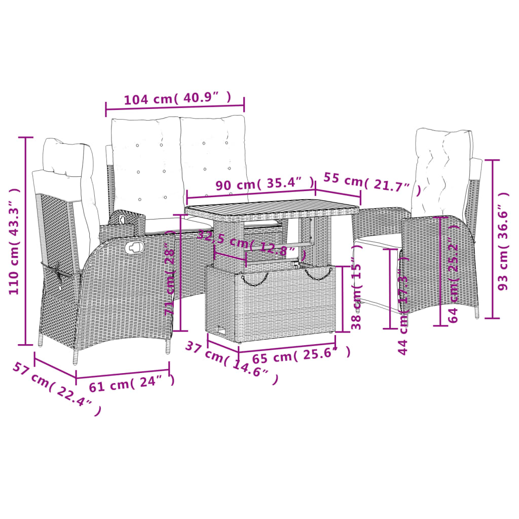 vidaXL Σετ Τραπεζαρίας Κήπου με Μαξιλάρια 4 τεμ. Μαύρο από Συνθ. Ρατάν