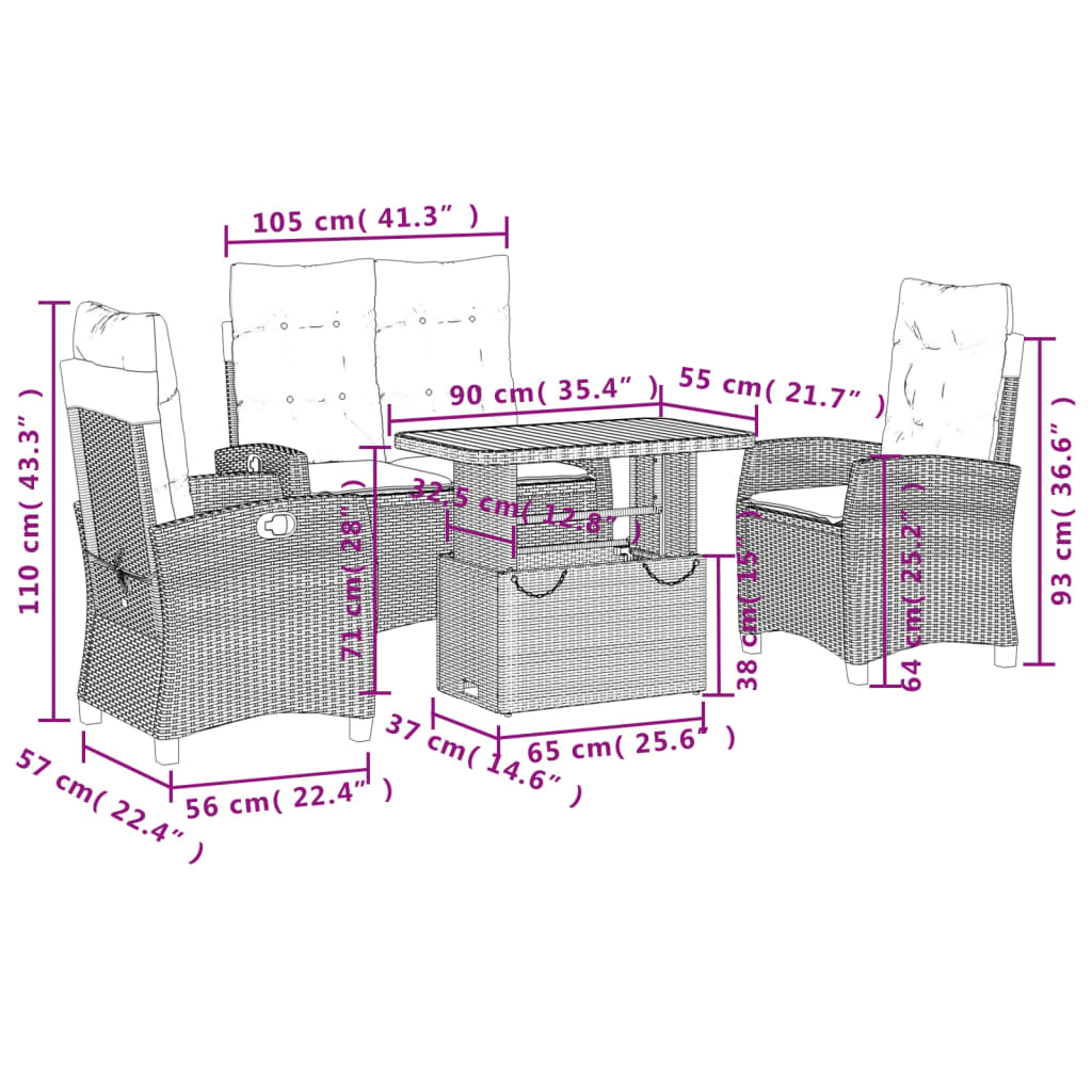 vidaXL Σετ Τραπεζαρίας Κήπου 4 τεμ. Μπεζ Συνθετικό Ρατάν με Μαξιλάρια