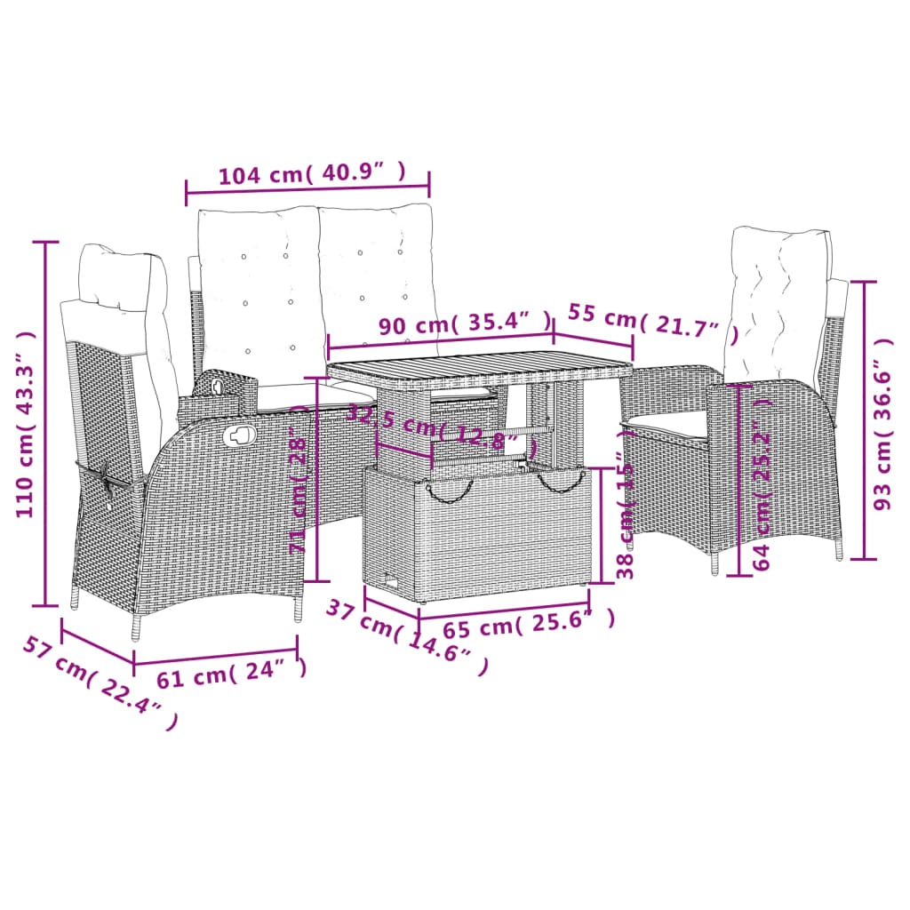 vidaXL Σετ Τραπεζαρίας Κήπου 4 τεμ. Μπεζ Συνθετικό Ρατάν με Μαξιλάρια